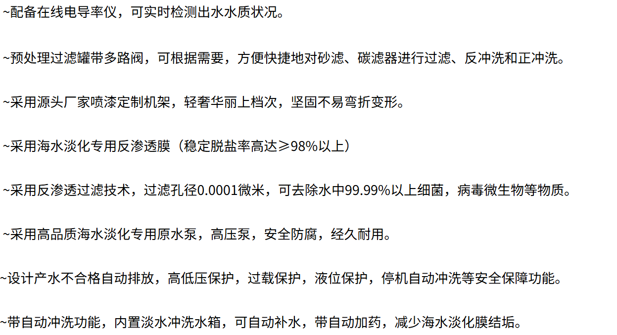 设备适用于靠海岛屿、海岛别墅度假村、海上钻井平台、中小型海水工厂生活供水使用