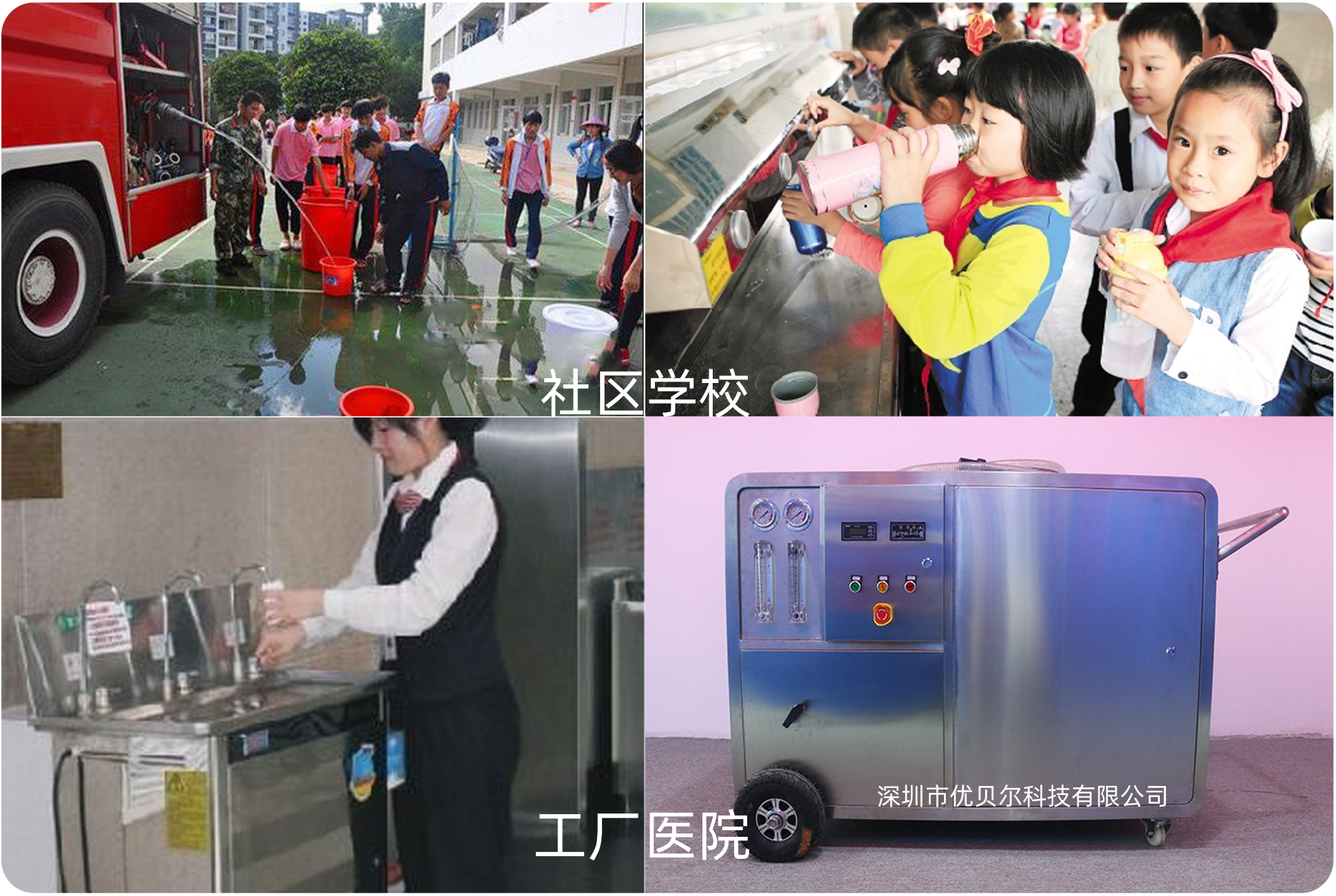 作用:用于社区无生活饮用水或社区紧急缺水时供水,可以直接提供直饮水,可为整所学校提供饮用水;