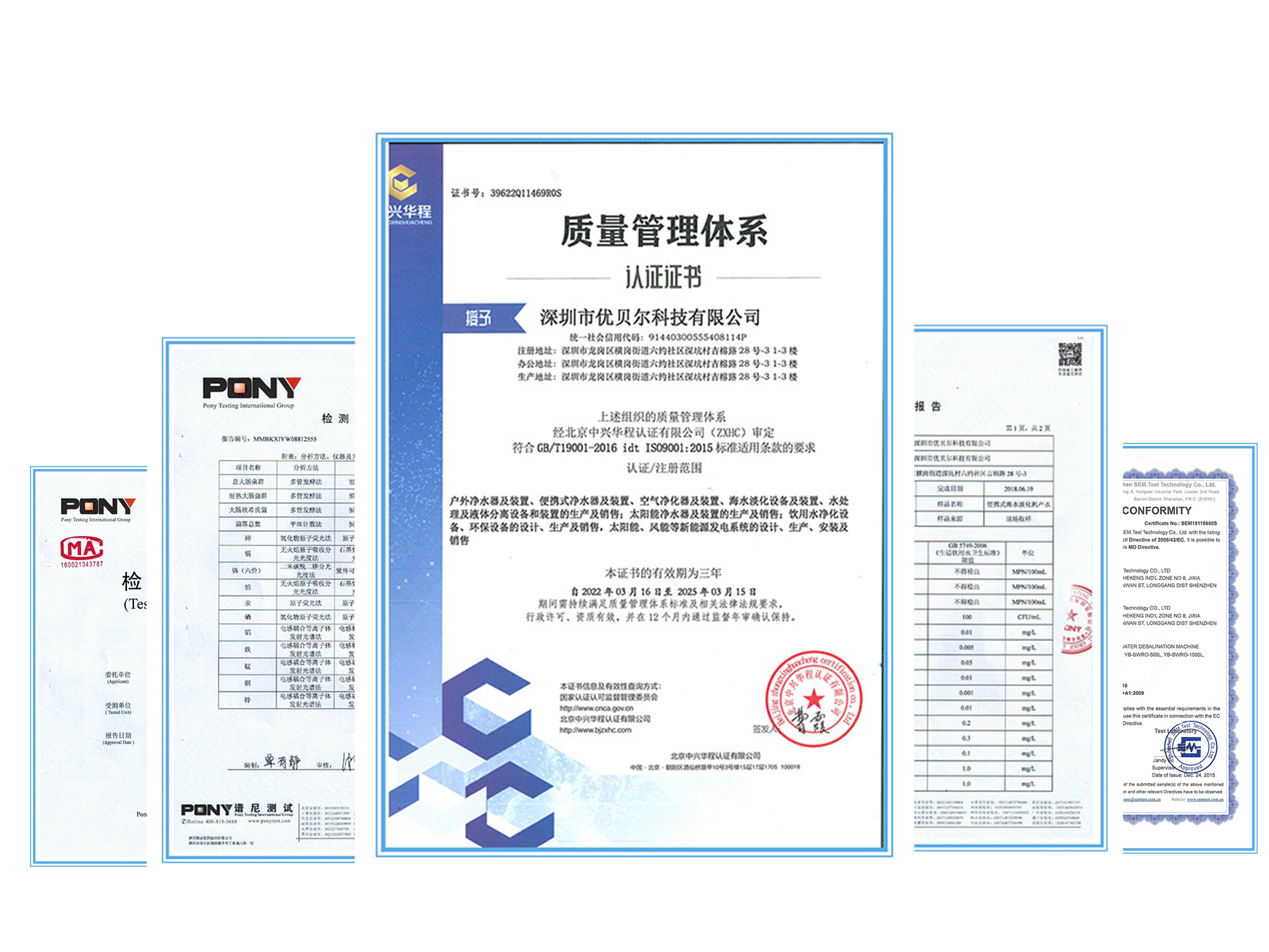 优贝尔海水淡化设备的证书及产水检测报告: