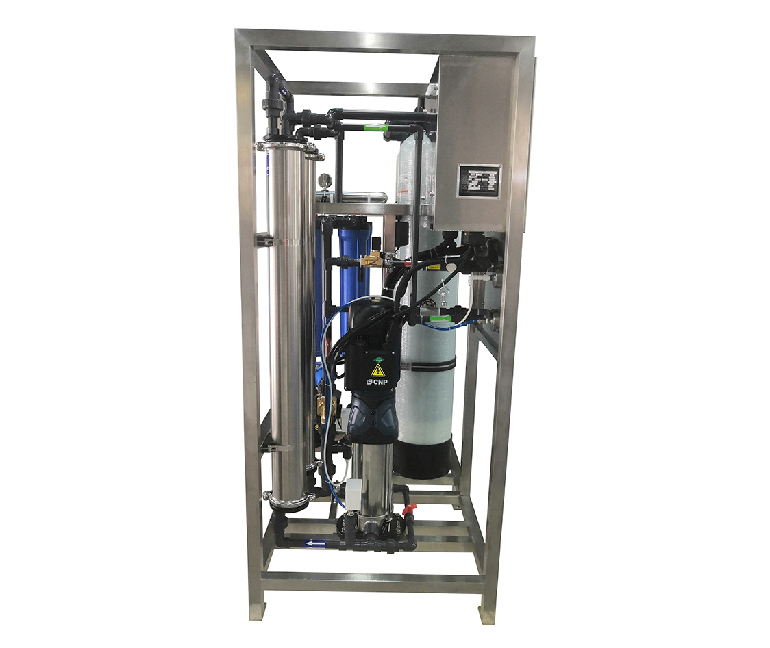 反渗透技术是目前应用Z广泛的脱盐水处理技术,反渗透膜能去除水中的离子和小分子有机物,脱盐率高达99.8%,无相变效率高,布局简单,方便扩容,设备连续产水,运行可靠,系统操作维护简单方便,全自动运行可实现无人值守。 设备采用了不锈钢架结构,能有效防止撞伤,损伤等情况的出现