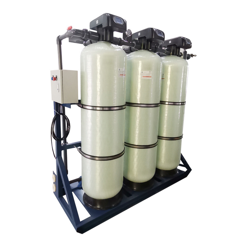 软化水设备:用离子交换技术,通过树脂上的离子与水中的钙、镁离子进行交换,从而吸附水中多余的钙、镁离子,达到去除水垢(碳酸钙或碳酸镁)的目的。