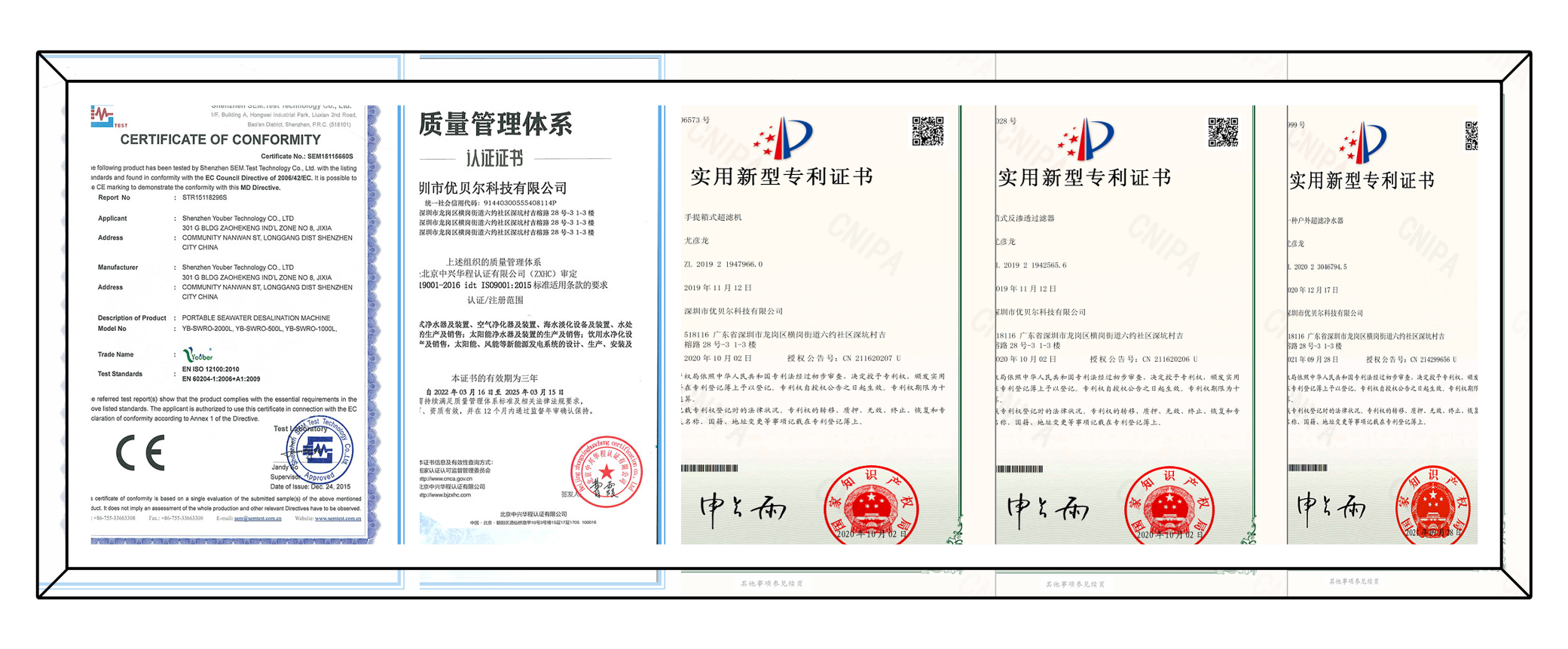 优贝尔证书及专利: