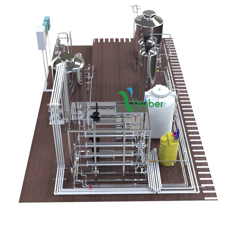 | 主要配置 | 原水泵,石英砂过滤器,活性炭过滤器,自动过滤阀,精密过滤器,高压泵 RO膜,CIP系统,PLC自动控制,HMI触摸屏,后置UV杀菌器,仪器仪表,阀门管件等 | ||
